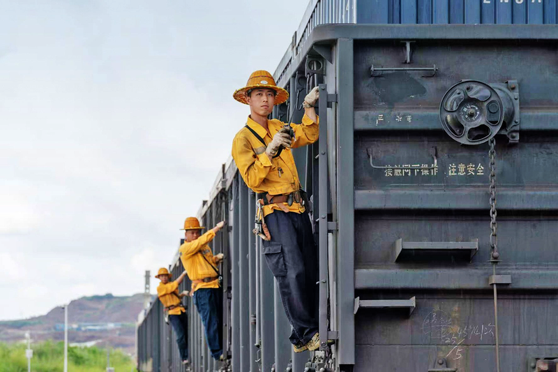 10月1日,柳州车务段浮石站调车组在货场内进行调车作业。 覃晓平 摄