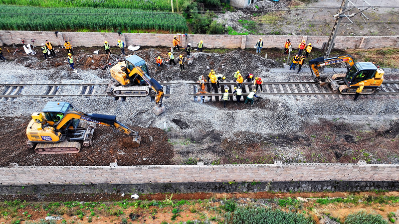 3月18日,南昆线集中修施工作业持续推进,百色工务段集结60余名骨干作业人员,在龙广站站内进行基床封闭作业。此次集中修将大幅提升南昆线设备质量与运输保障能力,为西部陆海新通道安全畅通夯实基础。 刘锦涛 摄